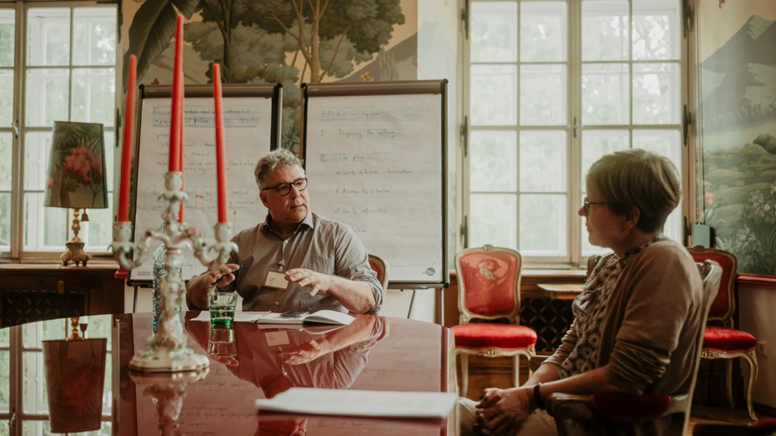 Carlo Fabian in conversation with Mona Dreesmann at a Sciana Network residential meeting in May 2025