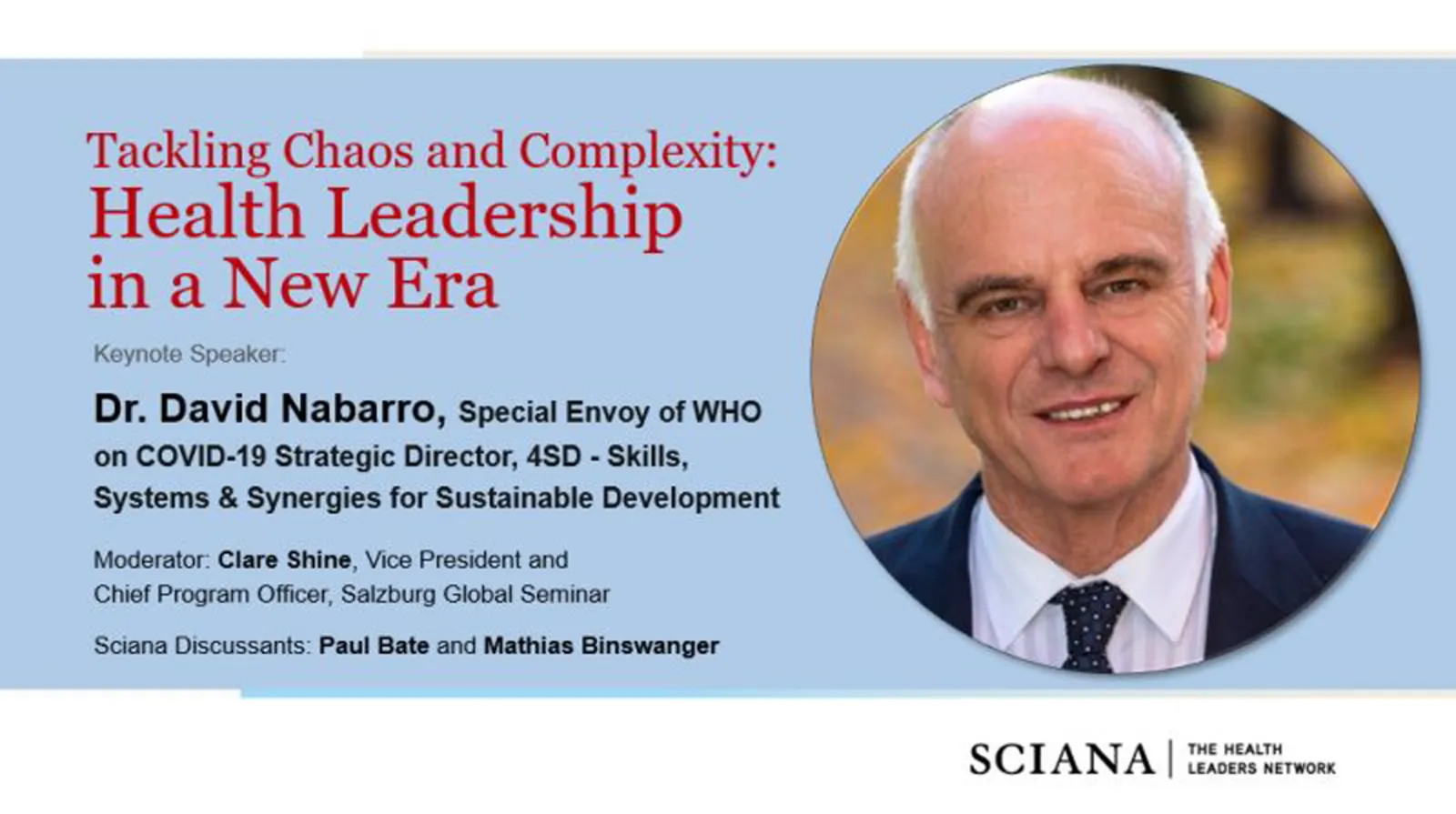 David Nabarro is the latest guest to feature in Sciana's webinar series